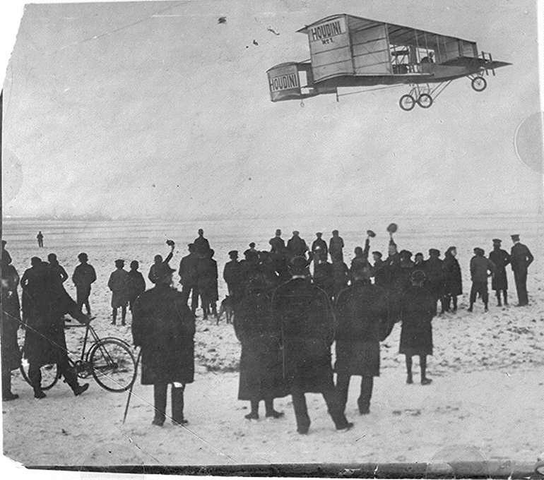 En diciembre de 1909, Houdini asiste a una exhibición de vuelo en Hamburgo y seguidamente compra un aeroplano marca Voisin. Apenas un año después, se convierte en un pionero de la aviación al ser el primer aviador en realizar un vuelo en Australia. ¡Va por usted, maestro!