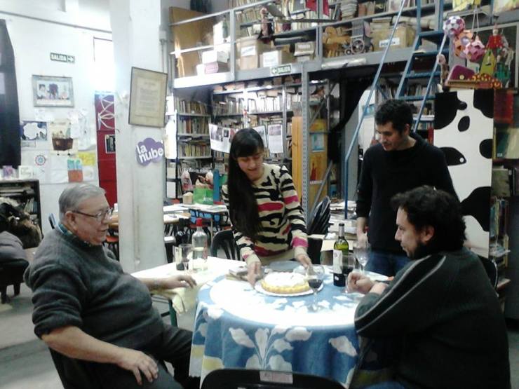 Como colofón a la gira argentina, gran asado y gran sobremesa con Pablo Medina en La Nube. Entre libros infantiles y títeres, entre vino y vino, buen departimiento sobre Villafañe, los títeres de Lorca, Paco Porras… Y cómo no, buena compra de libros imprescindibles. ¡Larga vida a La Nube!
